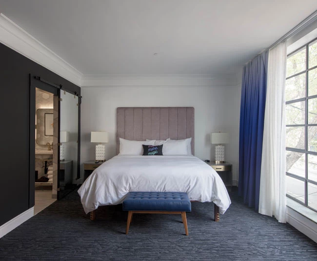 Layer your stay with local charm with the Suite Touch, a $150 add-on featuring a chilled bottle of champagne, two keepsake Hotel Trundle wine glasses, macarons from Ally & Eloise Bakeshop, and a handcrafted bouquet of seasonal flowers from Something Special Florists, as well as parking.